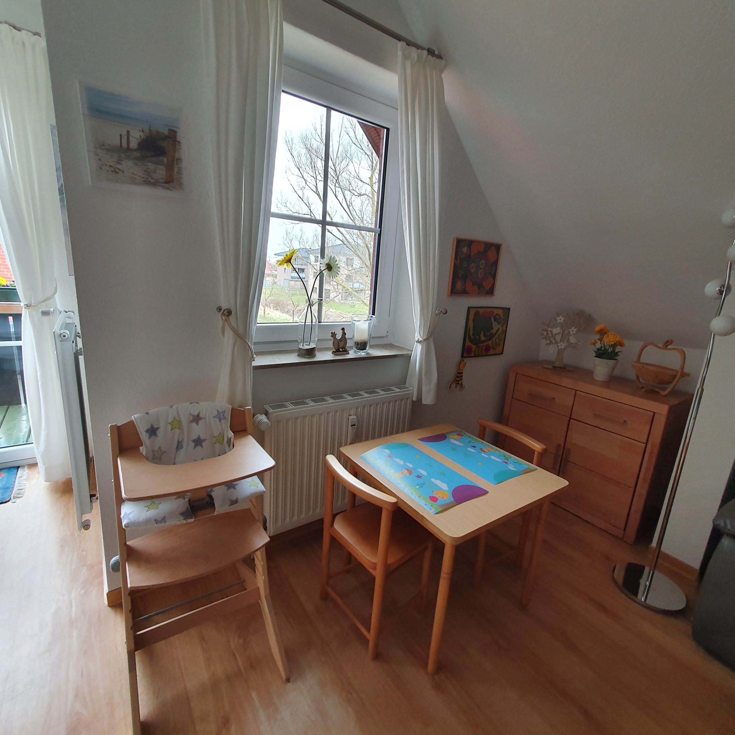 Im Wohnzimmer befindet sich auch eine Spielecke mit Tisch und Stühlen sowie ausreichend Spielen, Puzzles, Büchern, Puppen, Lego, Sandspielzeug, Malstiften etc., die bei Schmuddelwetter Ihre Kinder auf andere Gedanken bringen.
